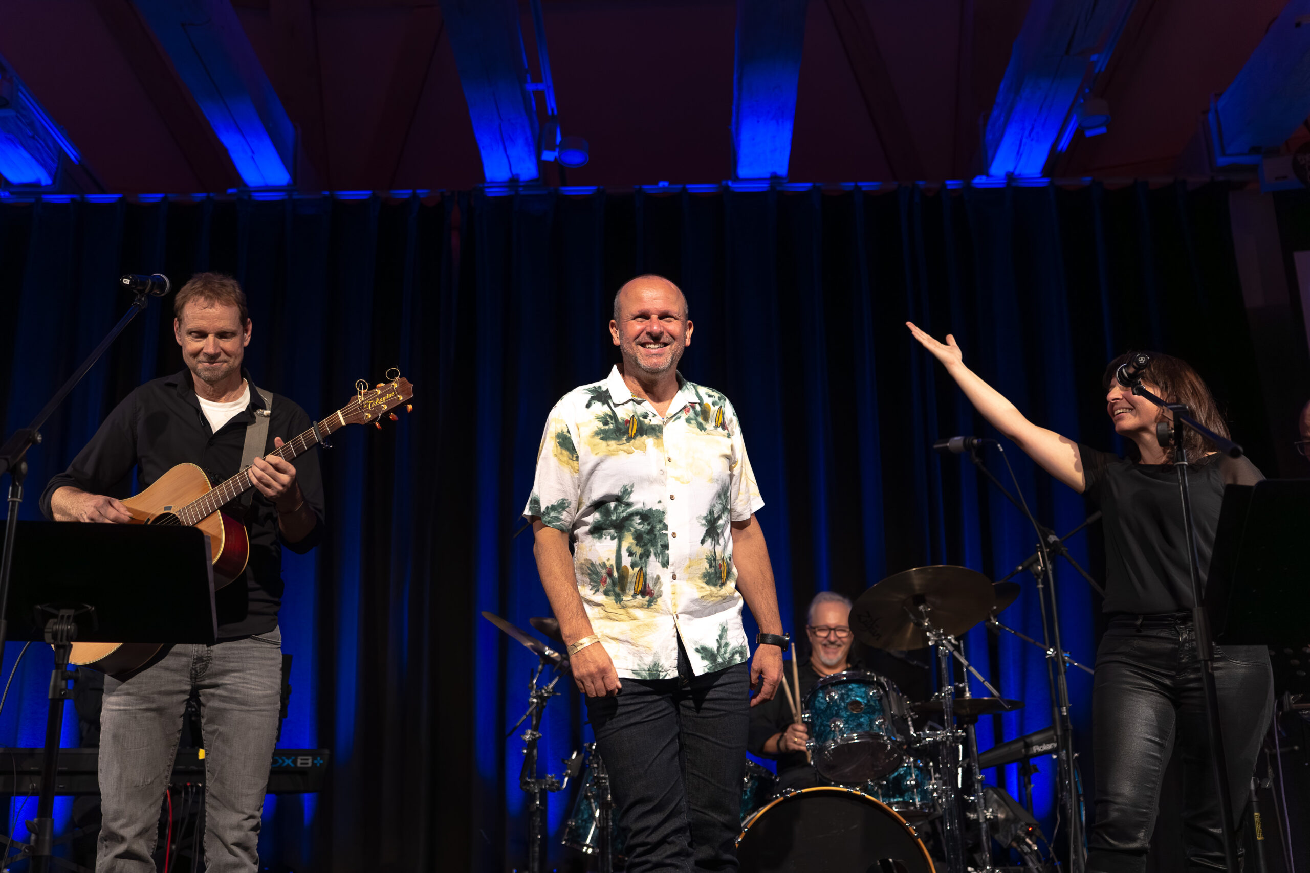 So spulten wir den unangenehmen Aufbau- und Soundcheck-Teil gelassen vor vollem Haus und Publikum ab, warteten geduldig die Siegerehrung der Tombola zum Tag der Demokratie ab und hofften, uns von nun an endlich dem Konzert in aller Zuversicht und Spielfreude widmen zu können.